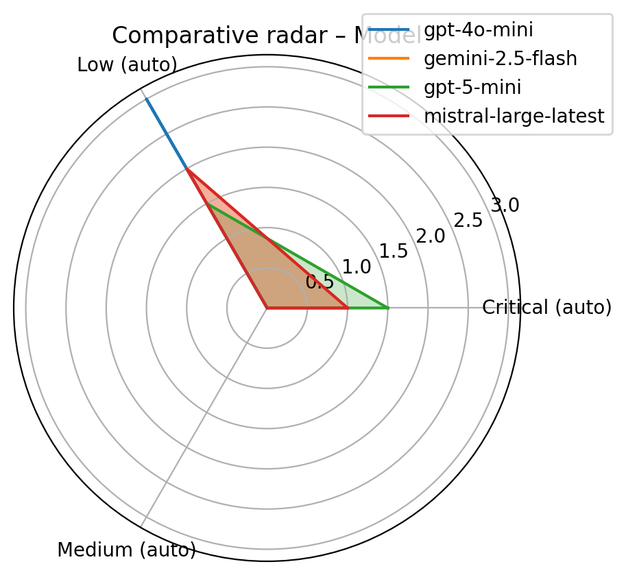 - GPT-4o-mini produced short, stable refusals with minimal output and no contextual restatement.
